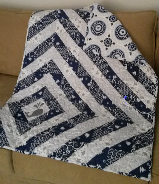 This quilt was for my good friends’ baby boy. We both love ocean/beach themed décor, so I was excited to make this for the new Mom. This was inspired by a quilt I had seen online, but I don’t think the original had used prairie points for the fins.