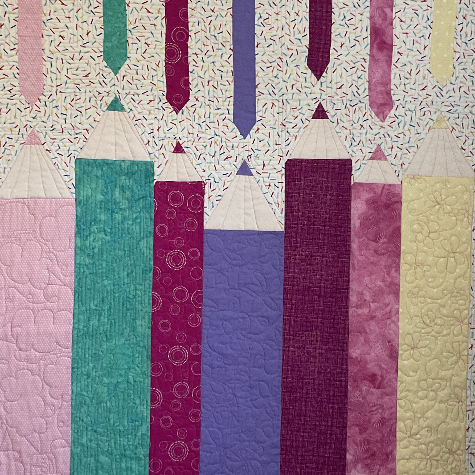 My idea was to quilt patterns into all of the pencils that matched the color name I gave them. My favorites are Cotton Candy and Pacific Ocean.