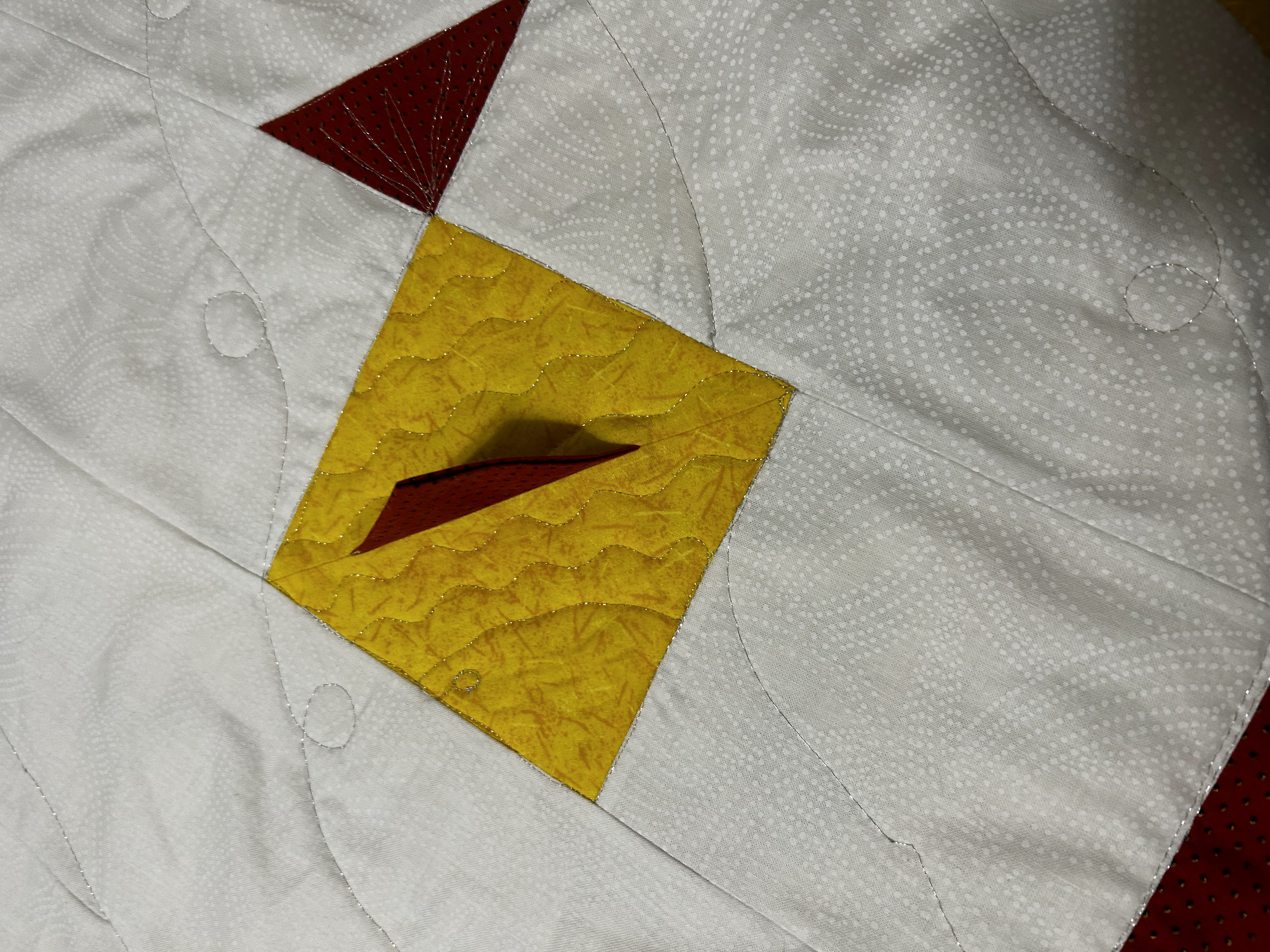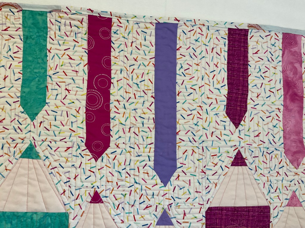 Also quite pleased with my geometric mazes. I appliqued on the color strips after everything was quilted.