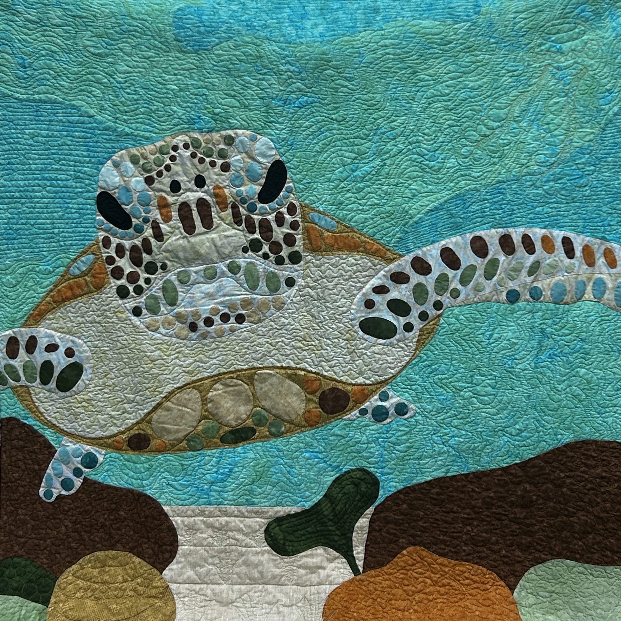 When it came time to quilt, I lightly quilted the background and had a lot of fun quilting in the details on the fish.