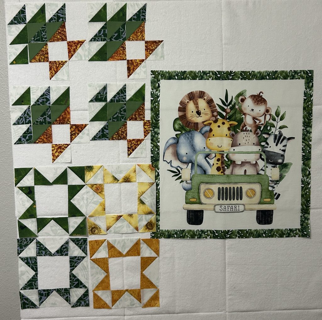 I wanted to make a sampler-style quilt with this panel for a baby boy, who is now a toddler. As the poor middle child, his older brother and younger sister both already have a blanket from me. Hopefully these blocks that I’m falling in love with will make up for it. 😂
