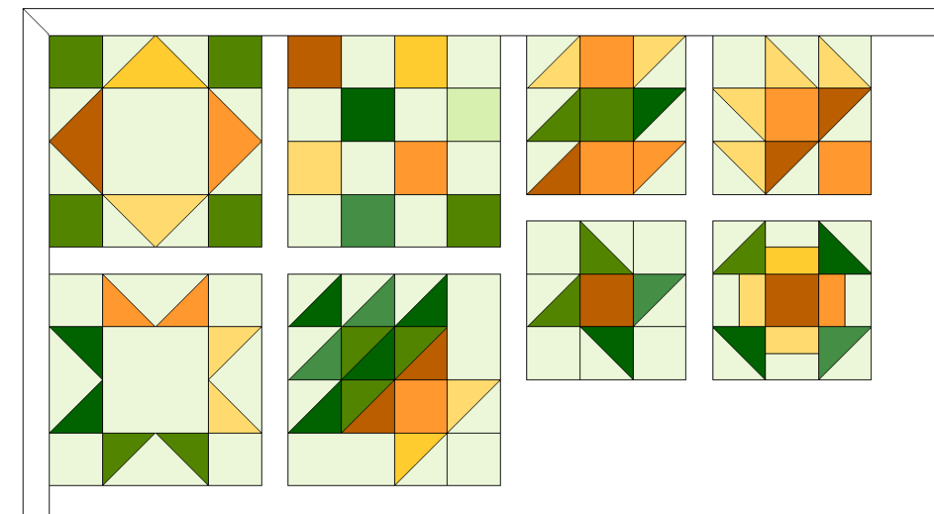I browsed Precut Bonanza! by Kimberly Einmo for several blocks that I liked for this sampler. The blocks in that book have pretty standard sized pieces that allows a lot of mixing once I make a bunch of HST, flying geese, and strips.